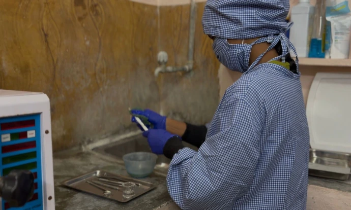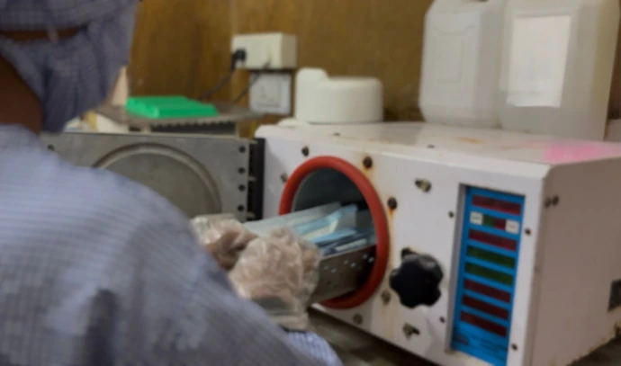 Each instrument is individually wiped with cotton and spirit, ensuring surface-level sterilization and complete cleanliness.